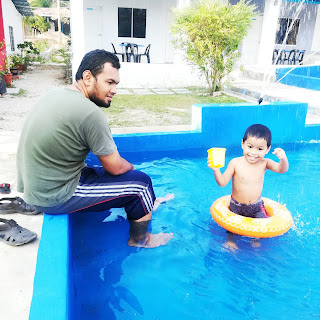 Walid melayan anak, bagi anak serasi dulu, sebelum dia ke kolam 6kaki acah acah nak belajar swimming. air kolam ni memang bersih. Kebetulan kami tak p cuti sekolah, so memang takde orang pun. Syok la dorang mandi berdua je tanpa gangguan.